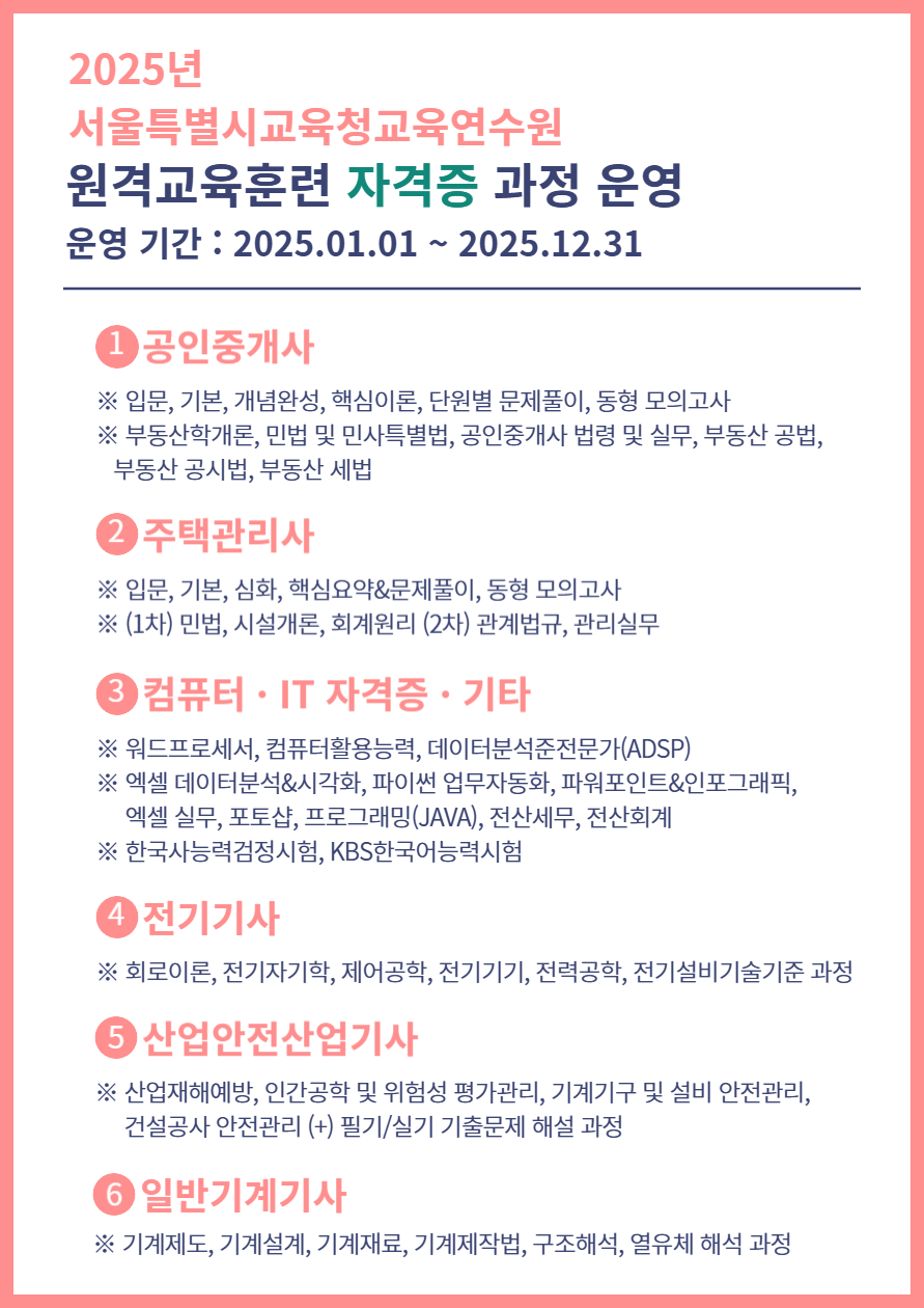 ★2025년 자격증 과정 운영 안내★